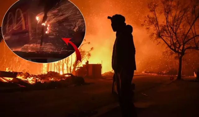 Dünyanın süper gücü olarak tabir edilen ABD'nin yangını kontrol altına alamamasının en büyük nedeni kuvvetli fırtına... Bölgede çekilen bir görüntü, rüzgarın alevleri nasıl taşıdığını gözler önüne serdi.
