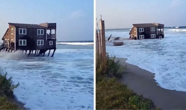 ABD'nin Kuzey Karolina eyaletinde yükselen deniz seviyesi ve gelgit nedeniyle kıyı erozyonu meydana geldi.Dev dalgalar, deniz kıyısına konumlandırılan ve eşsiz manzarasıyla herkesi büyüleyen evi temelinden yıktı. Dalganın etkisiyle sürüklenen bina tamamen yerinden kaydı.
