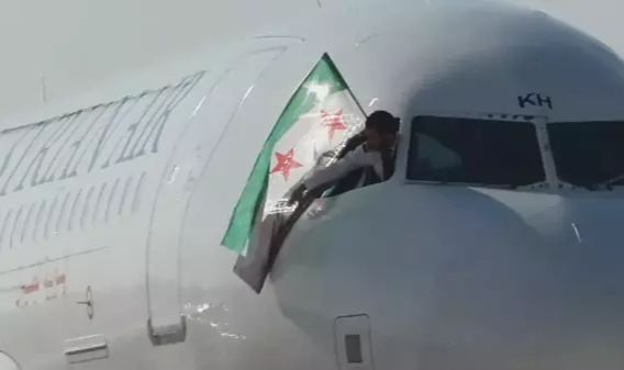 Uçağın Halep'e inmesinin ardından ise pilot, Suriye'nin yeni bayrağını çıkararak kameralara görüntü verdi. Pilotun bu hamlesi büyük ses getirdi.