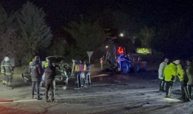 Tekirdağ’ın Ergene ilçesinin Ulaş Mahallesi’nde sürücüsünün henüz kimliği belirlenemeyen otomobil, aynı yönde seyir halinde Ö.A.’nın kullandığı iş makinesine arkadan çarptı.Çarpmanın şiddetiyle demir yığını haline dönüşen otomobil alev alarak yanmaya başladı. Kazayı görenlerin ihbarıyla bölgeye jandarma, sağlık ve itfaiye ekipleri sevk edildi.